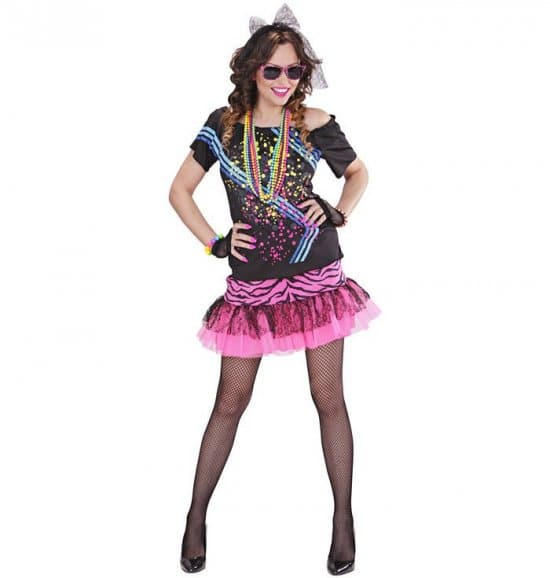 80’er Rock Pige Kostume – T-Shirt$Nederdel$Fingerløse Nethandsker$Pandebånd