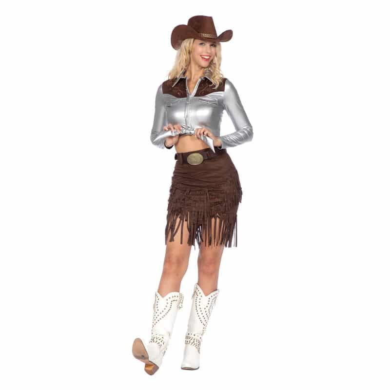 Cowgirl Kostume Sølv/Brun – Nederdel$Bluse$Bælte
