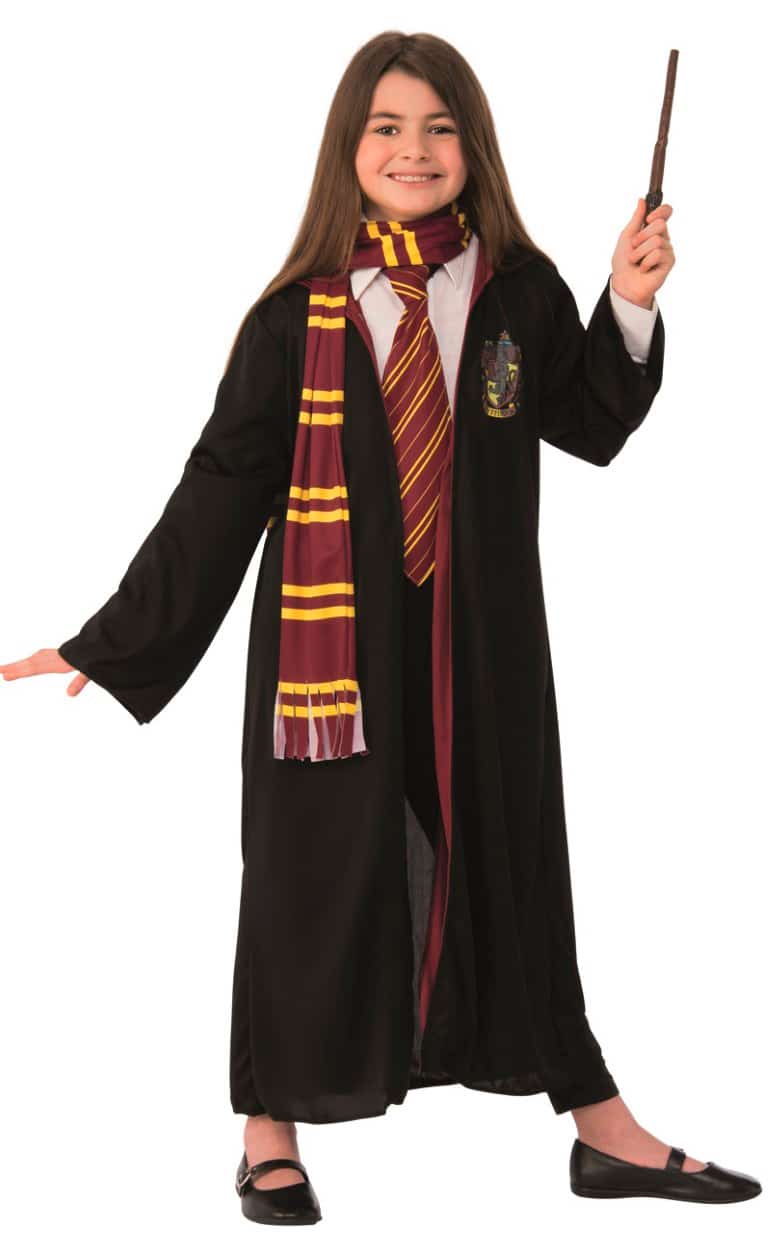 Som elev på Hogwarts, og specielt hvis man er Gryffindor elev, er det vigtigt at være med til alle timer så man kan score så mange point til dit hus som muligt! Harry Potter GRYFFINDOR stort Sæt indeholder: Lang sort kappe med Gryffindor, Harry Potter try